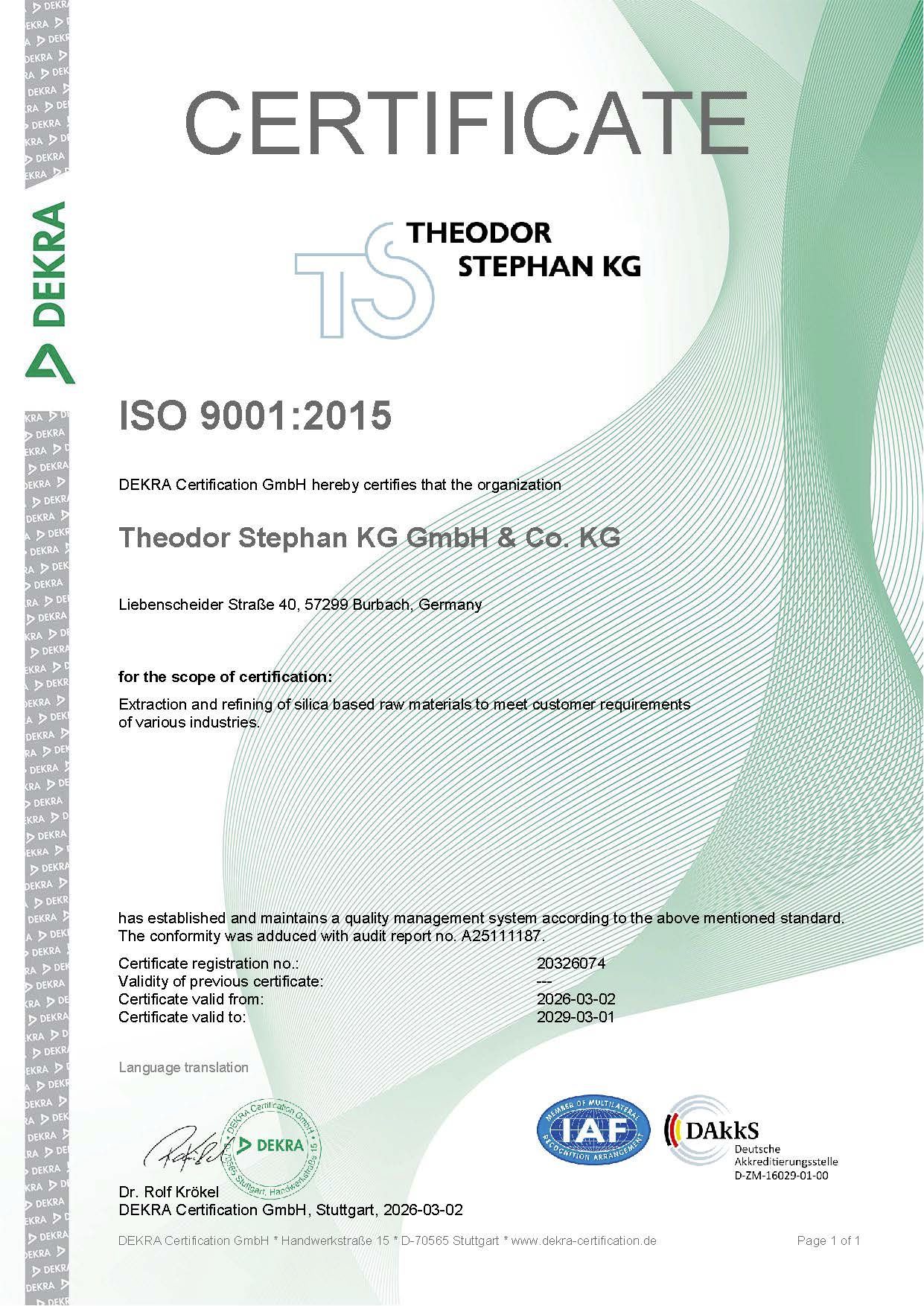 Our company has a defined quality policy and is certified according to ISO EN 9001:2015. As part of the certification, we have established a continuous improvement process that affects the entire process chain and all areas of the company. In case of questions Mr. Arndt Nikolaus Loh is at your disposal (Tel. 02736/5097490).